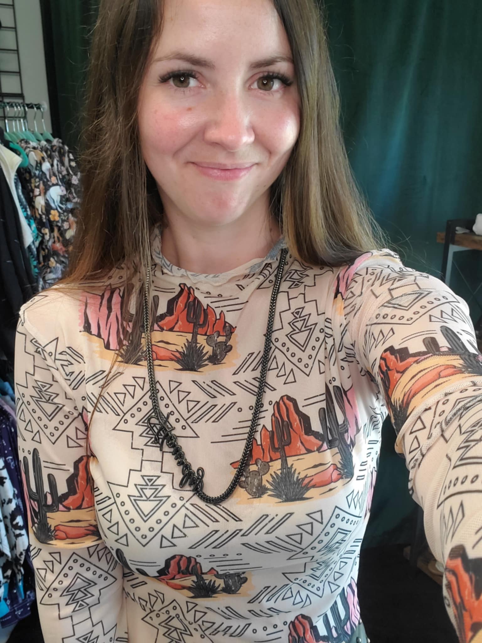 desert mesh western top, cactus print mesh shirt, women's western mesh top