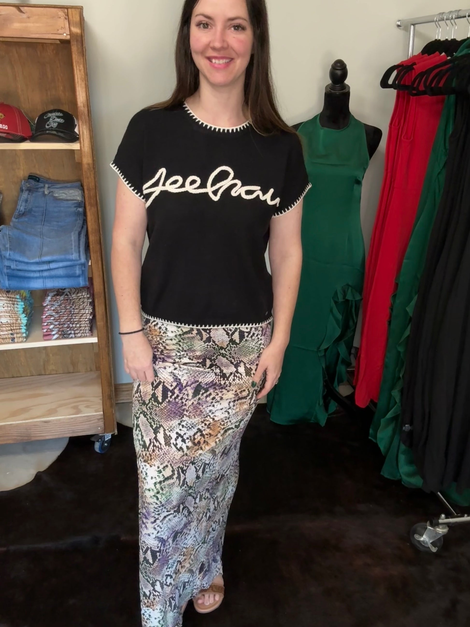 YEEHAW Soft Knit Black Sweater Shirt with White Trim